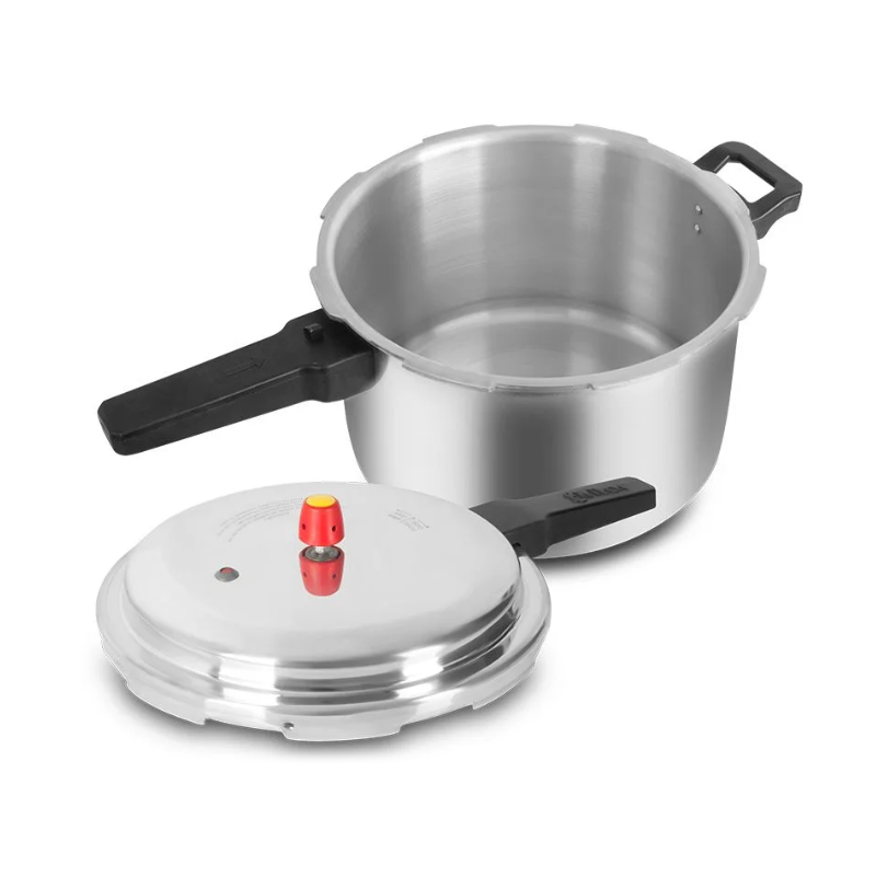 Panela de pressão de fechamento externo para uso profissional, confeccionada em alumínio. Design moderno e alta tecnologia, garantindo fácil manuseio, segurança e grande capacidade de produção. Ideal para restaurantes, cozinhas industriais, eventos e grandes famílias.